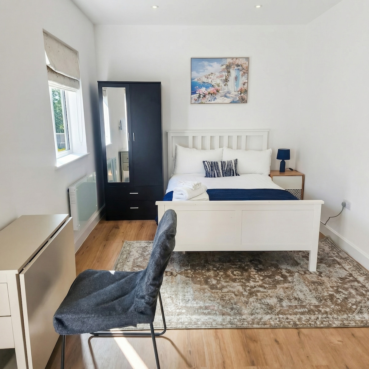 Dobro došli u naš moderni, klimatizovani i samostalni aneks prizemlja, koji nudi sopstveni privatni ulaz i namjenski terenski parking. Ova prostrana dvokrevetna soba s bračnim krevetom u potpunosti je odvojena od glavne kuće - bez zajedničkih prostorija - koja nudi privatnost, udobnost i praktičnost tokom cijelog boravka. Idealno za putnike koji putuju sami, profesionalce ili parove koji traže mirnu bazu u Milton Kejnsu.