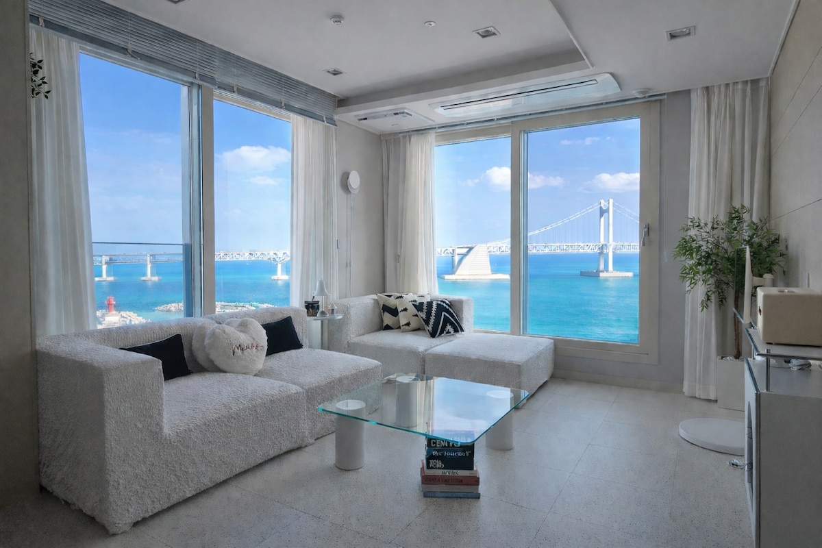 Prostorija je ❤️nedavno proširena Ima 2 spavaće sobe i 1 dnevnu sobu. Možete udobno da spavate sa 1 bračnim krevetom i 2 bračna kreveta:) Hvala što ste posjetili vilu Anri. Fantastičan pogled na most sa super 🎇bliskim mostom Gvangan (pogled na okean) Vidi se i iz💕 dnevne i iz spavaće sobe. Healing Full Ocean View i Gvangan Bridge View „Podijelite svoj život”💖 Novoizgrađeni 20-pyeong, vrhunski smještaj👍 Svakog dana dajemo prednost pranju, dezinfekciji, čišćenju i čistoći posteljine.😉🎇 Besplatan parking na 1. do 3. spratu🍃 smještajne zgrade (samohodan) Uživajte u 🍃Netflix YouTube-u i još mnogo toga uz pametni TV. Milak The Market 🍃odmah pored, 10 minuta automobilom od Haeundae Na 🍃prvom spratu se nalaze sadržaji kao što su kafić i prodavnica vina. Dostupni su čaj🍃🍃 protiv stresa (organski), kafa za ruke i tamjan. Ako vam je um komplikovan, nadam se da će vam malo olakšati vrući čaj i mirisi.