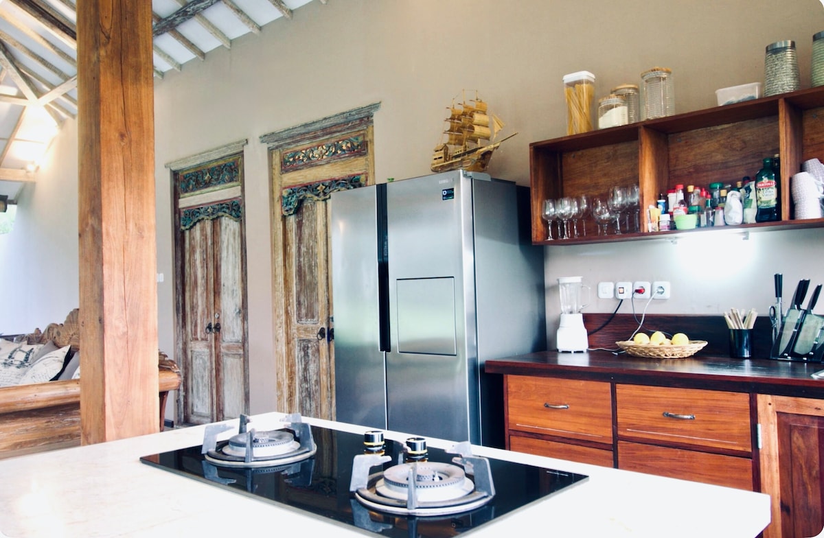 🌴 Boravite u jedinstvenoj vili u stilu kuće na drvetu, uzdignutoj u bujnim tropskim vrtovima i dizajniranoj za opuštajući odmor na ostrvu – daleko od standardnih hotela. Uživajte u privatnosti, šik dizajnu inspirisanom prirodom i mirnoj atmosferi Gili Travangana, a istovremeno ostanite udobno povezani. 🚀 Brzi Starlink internet pruža brz i pouzdan Wi-Fi, savršen za rad na daljinu, video pozive ili strimovanje. Radi vašeg mira, bezbednosne kamere su postavljene u kancelariji i na ulazima u vilu.