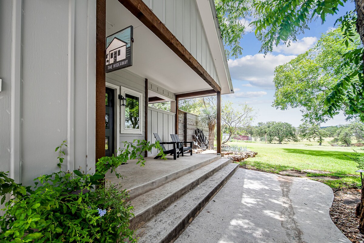 Pobegnite u The Hideaway, modernu gostinjsku kuću u stilu ranča, dizajniranu za udobnost i stil. Opustite se pored dvostranog kamina, uživajte u privatnoj hidromasažnoj kadi ili se opustite pod zvezdama pored ognjišta. Sa bračnim krevetom, zasvođenim plafonima i privatnim dvorištem, ovaj butik nudi savršenu ravnotežu između osame i blizine vinarija, restorana i glavne ulice Frederiksburga.