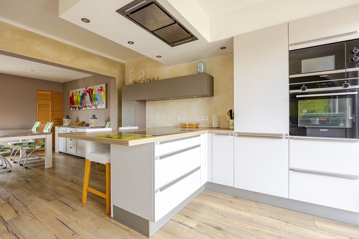 Radujemo se što ćemo vas ugostiti u ovom NEVEROVATNOM smeštaju, za JEDINSTVEN doživljaj u ovom području. 54 m2 udobnosti i zadovoljstva, uključujući dva balkona okrenuta ka jugu sa nesmetanim pogledom (jedan od 2 balkona je prilagođen osobama sa invaliditetom) sa privatnim parkingom. Đakuzi je vrhunski, izabran je iz higijenskih razloga i da bi se izbegle sve hemikalije neophodne za održavanje vode. Tradicionalna parna sauna, sa kamenjem od lave, omogućava izuzetne temperature.
