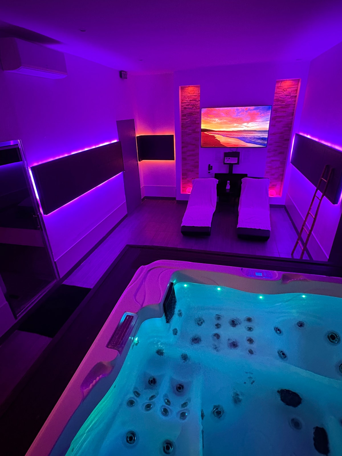 Pobjegnite kao par u ovom zadivljujućem romantičnom apartmanu nedaleko od okeana! IZNENAĐENJE JE ZAGARANTOVANO Samostalna prijava diskretno Smestite naše privatne sadržaje u stanu. Dostupno u trenucima kada želite da... Moderni led hamam za 2 i hidromasažne mlaznice Infracrvena sauna za 2 osobe Kada za dvoje ( NE BALNEO NI HIDROMASAŽNA KADA) sa vodopadom i priborom za kupanje Stolica za opuštanje u masaži Svetla atmosfera WI-FI + ET A/C