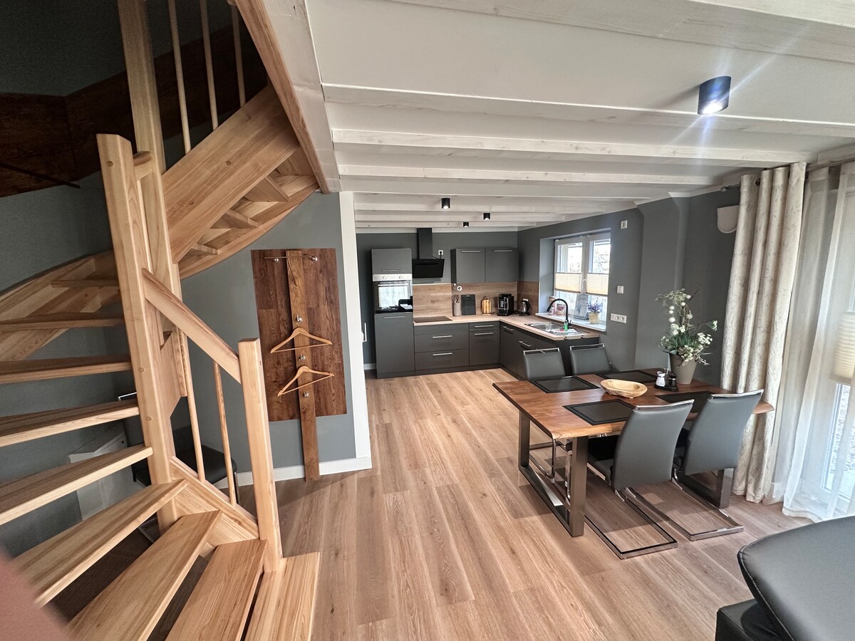 potpuno renoviran gornji sprat stare seoske kuće u veličanstvenom pejzažu. 2 spavaće sobe i moderna kuhinja, privatno kupatilo sa velikim tušem i kadom, dnevni boravak sa Wi-Fi mrežom, TV i video, Wi-Fi Sunčana terasa i bašta sa roštiljem. Bikegarage i sto za pingpong! Imamo vrlo ljubaznog psa, Karla. Na goste je navikla i najvjerovatnije će vas dočekati kada stignete!!