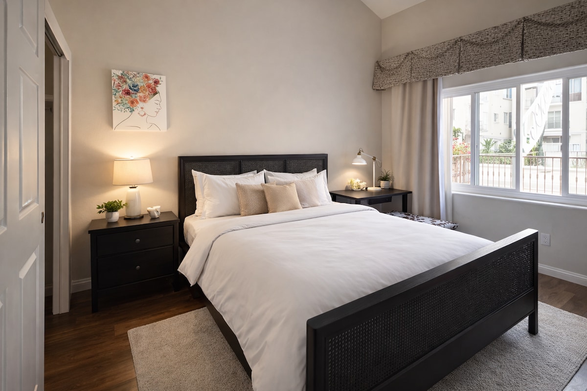 Enjoy a luxuriously stylish experience at this centrally-located cozy condo for 4, peacefully set a few steps away from SOFI Stadium, the Forum, YOUTUBE Theatre, The Hollywood Park Casino, and Intuit Dome. ONLY 5 MINUTES AWAY FROM LAX! While here you can relax and unwind in downtown Inglewood, shopping, eating, and dancing the night away, or hit the BEACH JUST 10 MINUTES AWAY. You can also go site seeing through Hollywood and Beverly Hills. QUICK trip or LONG stay, this is definitely YOUR place!