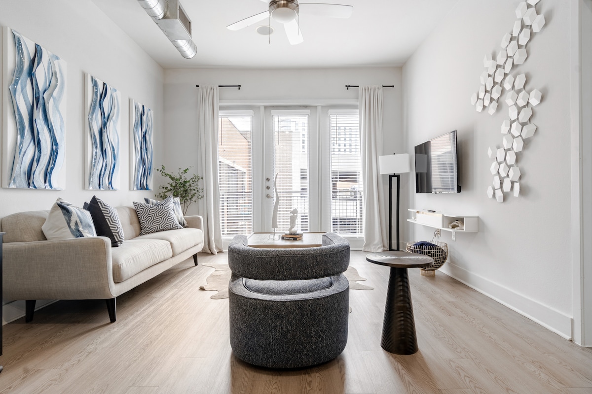 Experience the best of city living in our modern minimalist retreat! Pets Stay Free Enjoy breathtaking views of the city skyline from the comfort of our sleek and stylish high-rise apartment. Located in the heart of downtown, you'll be steps away from top attractions, trendy restaurants, and vibrant bars. Our apt. is the perfect haven for couples, solo travelers, and business professionals seeking a stylish and convenient base for their city adventures.