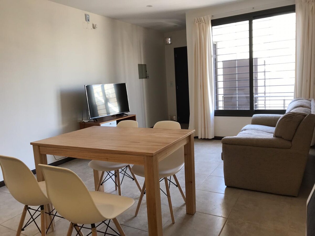 Predivan stan sa svim sadržajima za uživanje u nekoliko jedinstvenih dana u Mendozi. Ovaj smještaj ima 2 spavaće sobe i 3 kreveta, 2 kupatila (1 toalet). Pored prostranog dnevnog boravka i trpezarije, potpuno opremljen. U kompleksu imamo i garažu za mali automobil. Ovaj apartman se nalazi na odličnoj centralnoj lokaciji i u blizini najboljih mesta u Mendozi. Tu su supermarketi, benzinska stanica, apoteke, bolnice i tržni centri.