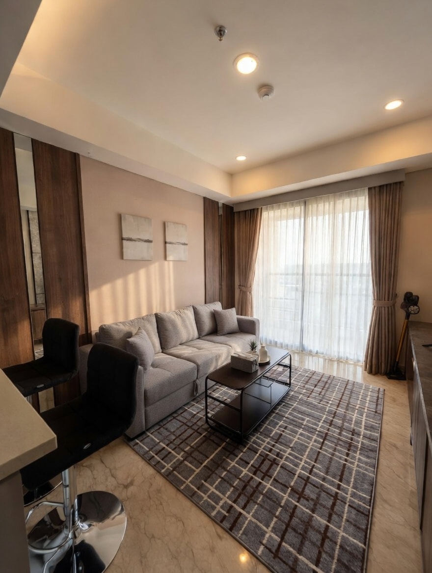 Discover our city-center apartment where modern design meets family-friendly comfort. Enjoy the spacious interiors featuring high-quality appliances. The apartment is a corner unit, meaning you will get both a tropical-themed pool and a breathtaking city view in every room. The apartment is directly connected to Hub Life and Taman Anggrek Mall, which are a few steps away from Central Park Mall.