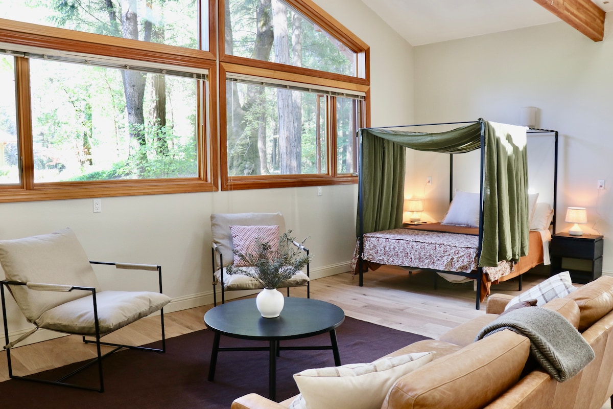 Designer studio w/ private creek, 5 min from town