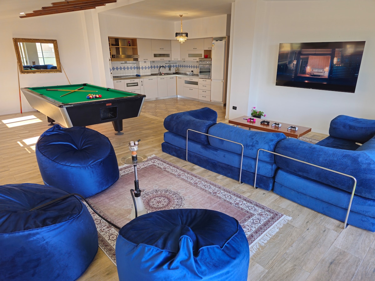 Adriatic Penthouse – Panoramic Luxury Above Durrës Experience the ultimate in penthouse living at the Adriatic Penthouse, perched high above the vibrant heart of Durrës. This flagship retreat combines breathtaking Adriatic Sea views with modern design and entertainment amenities, creating an unforgettable stay for discerning guests. Private jacuzzi spa for sunset relaxation Billiards & ping pong for entertainment .