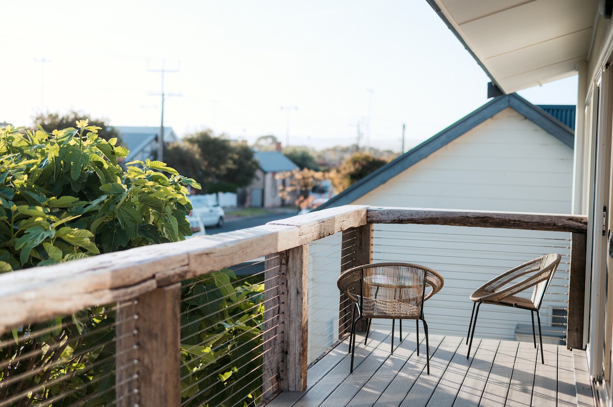 Opustite se u našoj modernoj kući za odmor na samo 2 minuta hoda od plaže. Uživajte u udobnim bračnim krevetima ili krevetima za jednu osobu, potpuno opremljenoj kuhinji, grijanoj spoljnoj hidromasažnoj kadi za 6 osoba, vanjskom tušu, klima-uređaju s podijeljenim sistemom, 2 lounge sobe, roštilju i Gozney Pizza rerni sa sjedećom garniturom na otvorenom, Disney, Netflix i Prime na velikom TV-u + neograničen Wi-Fi. Smješten nasuprot parka Jilki, zaigrajte partiju kriketa, šutirajte nogomet ili povedite svog besnog prijatelja u šetnju. Kućni ljubimci su dozvoljeni u svim oblastima, osim na krevetima i ležaljkama.