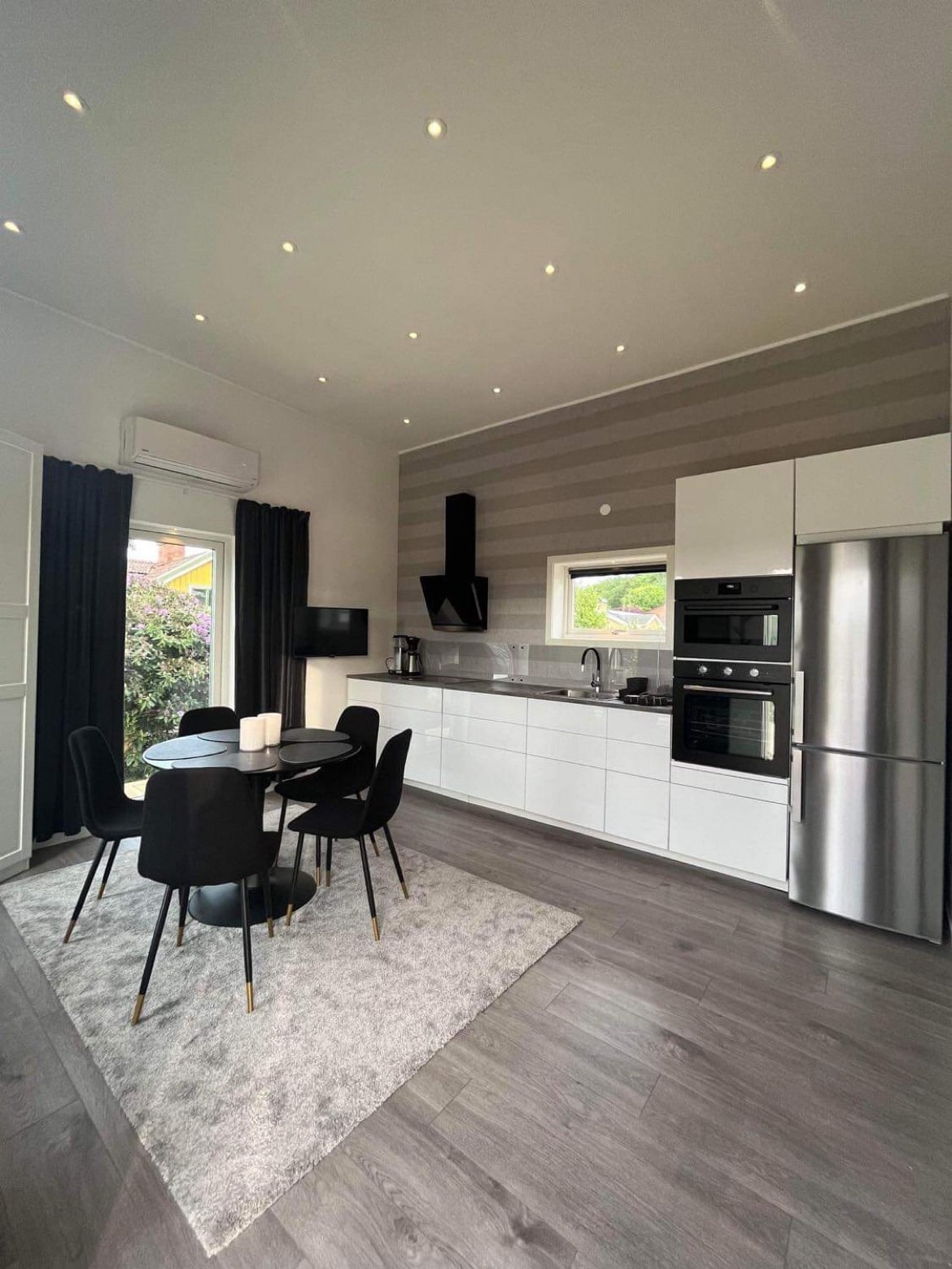 Attefallshus på ca 30 kvm inklusive loft. Fullutrustat kök med diskmaskin, kyl & frys, micro, ugn, kaffebryggare etc. Luftvärmepump med värme/kyla Wi-fi 100/100 mbit. Smart-TV, Apple-TV samt SONOS. Helkaklat badrum med golvvärme, dusch, kombinerad tvätt/tork. 160 cm säng på loft, bäddsoffa 120 cm. Bord + stolar. Smartlås med kod för öppna/stänga Det tar ca 10-15 minuter att ta sig till Svenska Mässan, Scandinavium eller Liseberg. Till Liseberg är det exakt 1000 meter promenadvägen.