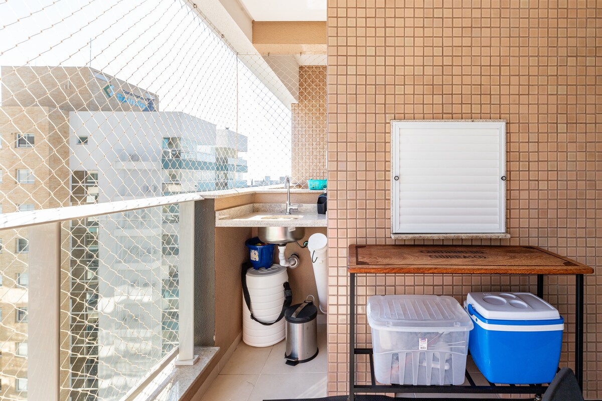 Ceo stan 300 metara od plaže. Fleksibilna prijava, roštilj, grijana voda, krevet na razvlačenje, pametni TV, klimatizovane sobe (podijeljene) i kuhinja. Prima najviše 4 osobe u 2 spavaće sobe sa bračnim krevetom. Ima 1 natkriveno garažno mjesto. Struktura zgrade pruža bazen za odrasle i djecu na krovu, igraonicu i teretanu. Obezbjeđujemo posteljinu, peškire, 4 stolice za plažu, frižider od 18 litara, roštilj i ražnjiće za roštilj.