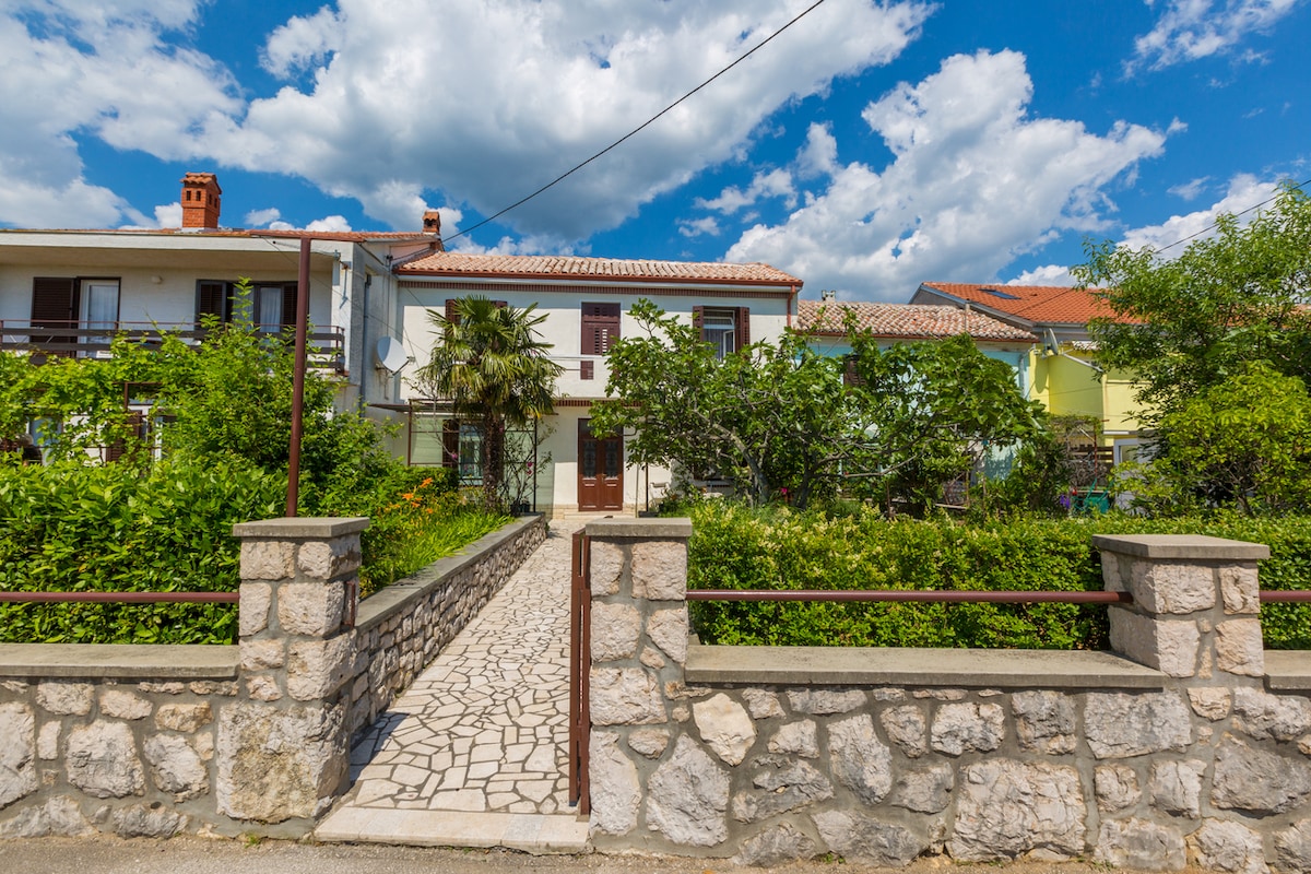 Nalazi se u mirnom dijelu ostrva Krk. Idealna je za porodice sa malom decom, zbog lijepo uređenog dvorišta koje je zabava za najmlađe članove porodice. U bašti možete provesti prijatne večeri . Mirno mjesto nudi idealan odmor za one koji su umorni od gužve i vreve.