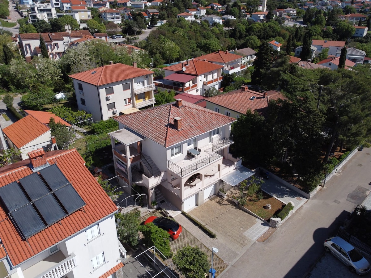 Apartman se nalazi u Krku, na oko 250 metara od plaže Dražica i 350 metara od plaže Porporela. Gosti mogu da koriste smeštaj sa terasom i besplatnim privatnim parkingom. Ova kuća u nizu nudi sobe sa kuhinjom i kupatilom. Sve sobe uključuju kablovsku televiziju sa ravnim ekranom, kuvalo za vodu, tuš, fen za kosu i ormar. Imaju i frižider. Objekat se nalazi u blizini popularnih atrakcija kao što su plaža Jezevac i Frankopan Kastelo.