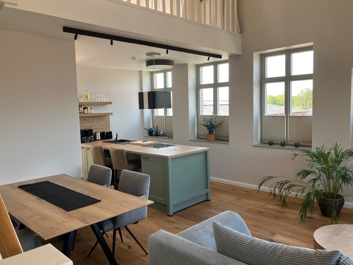 Jedinstven i moderno uređen stan u loft stilu na farmi konja. Apartman za goste ima 80 m2 sa otvorenim dnevnim boravkom i trpezarijom, 2 spavaće sobe sa visokim plafonima, veliko kupatilo sa prozorima i terasom. Stan se nalazi u Leuktenburgu, u blizini železničke stanice Bremen-Lesum. Put do centra Bremena traje oko 15 minuta automobilom. U blizini se nalaze veoma dobri tržni objekti i prelepe šetnje u području za rekreaciju.