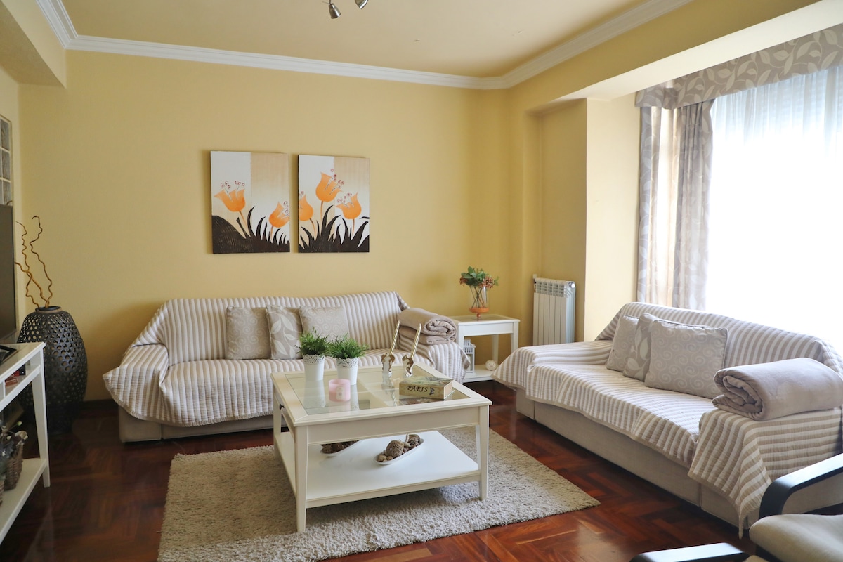 You will be 20 meters from Vigo's Main Street, Gran Vía. You have room for the car if necessary, we do not mind if you come with your pet, we have three Golden Retrievers, 4 minutes from here you have the Gran Vía shopping centre with everything you may need, you will be 5 minutes from downtown by car or 20 minutes walk, or if you want you can take the bus that stops 20 meters from our home, we will help you to enjoy the best of our city.