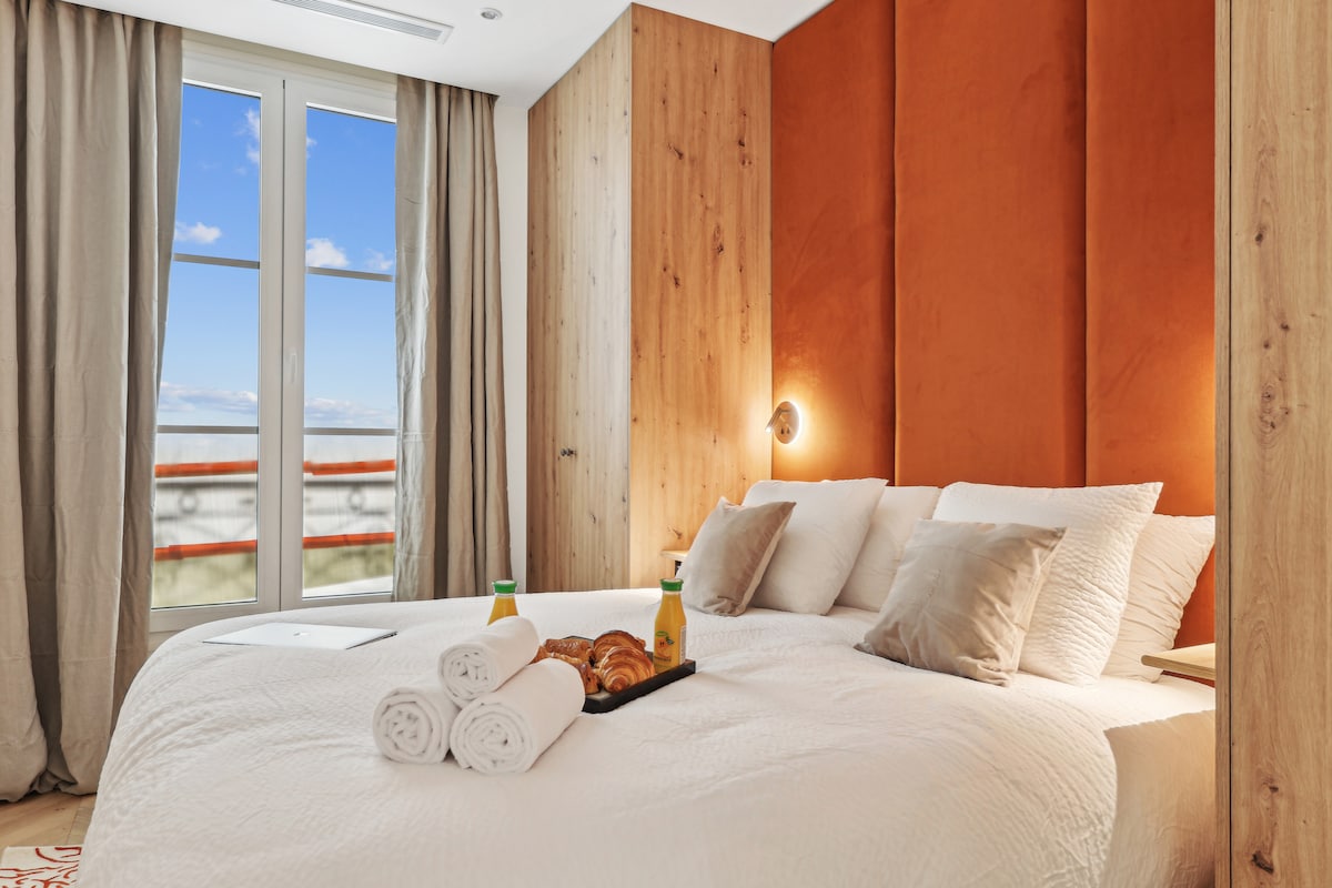 S pogledom na naše zadivljujuće unutrašnje dvorište i šarmantnu susjednu crkvu, vaš pied-à-terre nudi otvorene poglede, nevjerovatno prirodno svjetlo i apsolutni mir u samom srcu Pariza. Svaki stan uključuje dnevni boravak sa sofom na razvlačenje, trpezariju sa okruglim stolom, prelijepu spavaću sobu sa luksuznim hotelskim krevetom, potpuno opremljenu otvorenu kuhinju sa mašinom za pranje sudova i mašinom za pranje i sušenje veša, tuš-kabinu i odvojeni toalet.