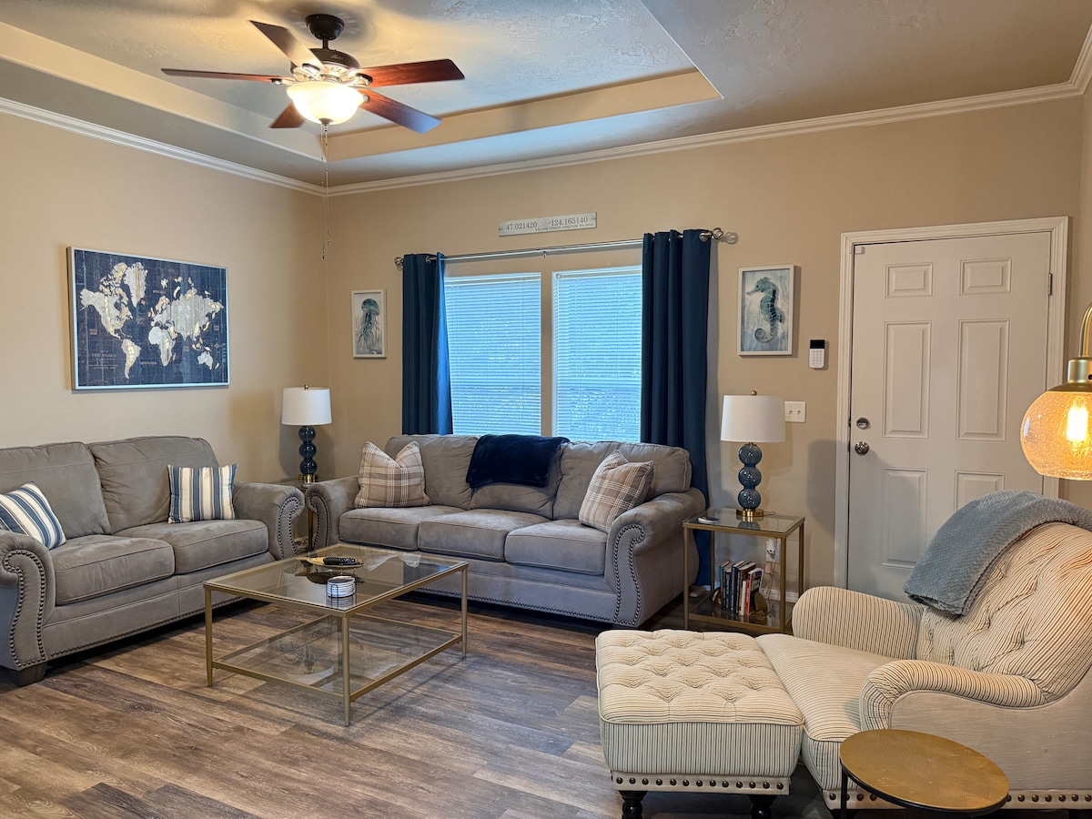 Copalis Bluff Hideaway, smješten u šumi na litici gdje se rijeka Kopalis spaja s morem, vrlo je privatan i ima jedan od najnevjerovatnijih pogleda u okolini... Naša paluba pruža najbolje posmatranje naših gostujućih divljih životinja... ćelavi orlovi, ospri, migrirajući kitovi i vidre koji se igraju u rijeci. Ovo je sjajno mjesto za opuštanje u bilo koje doba godine, sjedenje na terasi ili boravak unutra tokom oluje čitajući knjigu pored kamina.
