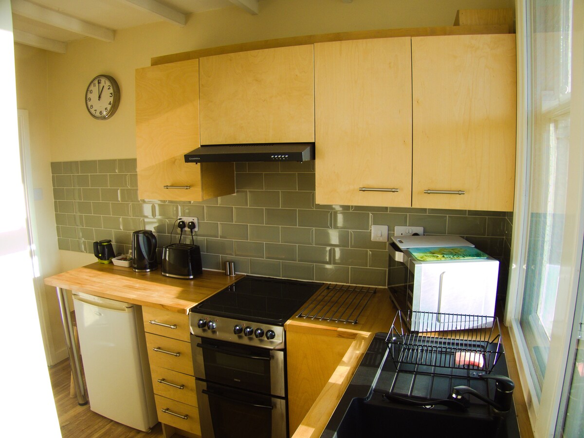 Dobro došli u naš samostojeći studio na vrhu brda okružen poljima i panoramskim pogledom na obalu Nortumbrije. Mesto za opuštanje i ponovno povezivanje sa prirodom. Nalazi se na pešačkoj udaljenosti od udaljene plaže i samo nekoliko kilometara od obalnog sela Alnmut i istorijskog sela Varkvort. Željeznička stanica Alnmouth udaljena je samo 5 minuta vožnje. Odavde možete da putujete direktno u Edinburg za 1 sat. Garsonjera ima otvoreni prostor za spavanje/ dnevni boravak sa kuhinjom.