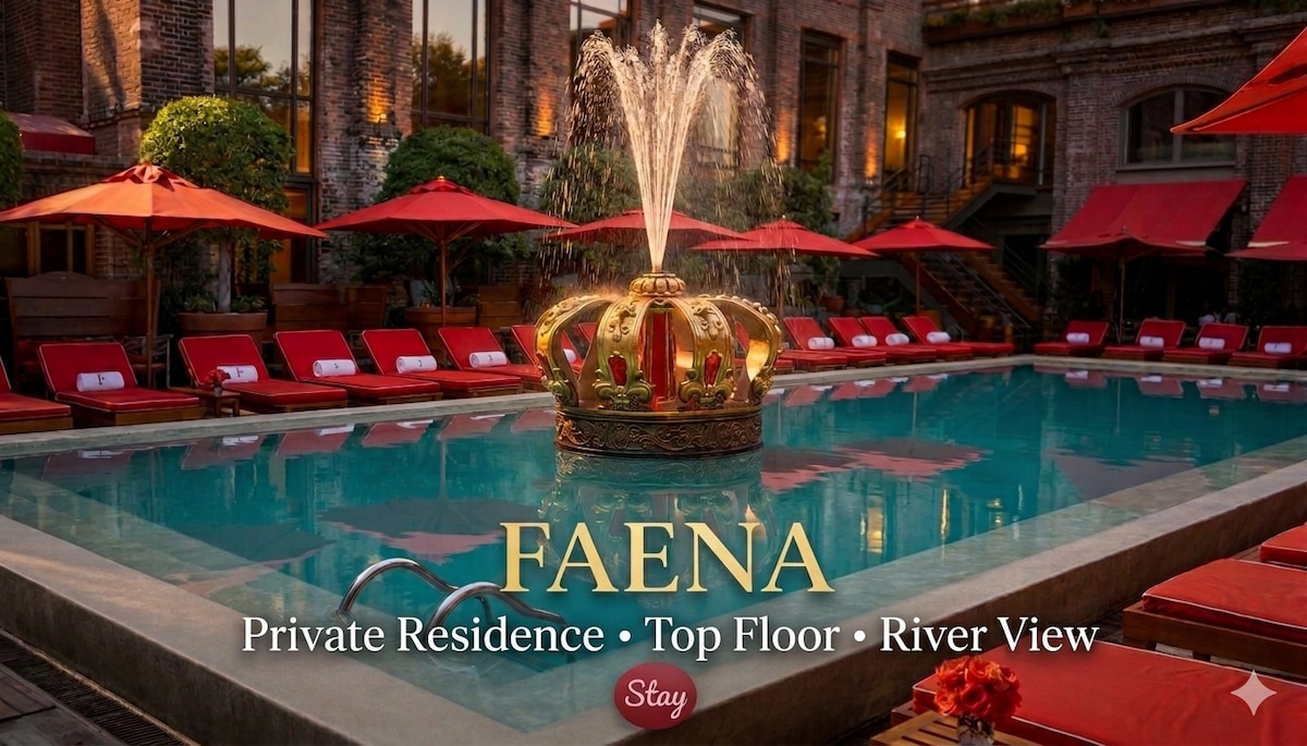 Thoughtfully designed, recently updated Top 6th Floor Studio in Faena Puerto Madero • Unobstructed River & Buenos Aires Skyline Views. Only unit with wall-to-wall sliding windows + screens—enjoy fresh air anytime. Sun-filled with stunning sunrises & sunsets. Automatic blackout shades, A/C, Heater, WiFi & American outlets. Full kitchen, bar + wine/champagne cooler. Spacious shower + bidet. Pool, spa, gym access. Comfortable for a one-night stay or extended living. Philippe Starck design.
