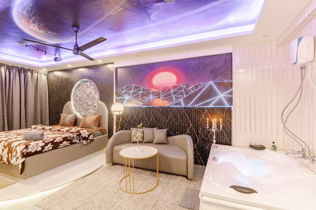 Ultra-luksuzni apartman na 41. spratu | Pogled na reku Jamunu • Život na velikoj visini u najvišem tornju u Delhiju • Panoramski pogled na reku Jamunu sa vrhunskog sprata • Wi-Fi velike brzine od 200 Mbps – idealno za rad na daljinu i duže boravke • Besprekorna dostava hrane (Swiggy, Zomato i drugi) • Jednostavan pristup taksiju i blizina ključnih gradskih atrakcija • Pogodnosti u sklopu kompleksa: prodavnica, salon, kafići i restorani • Parking je dostupan van kompleksa