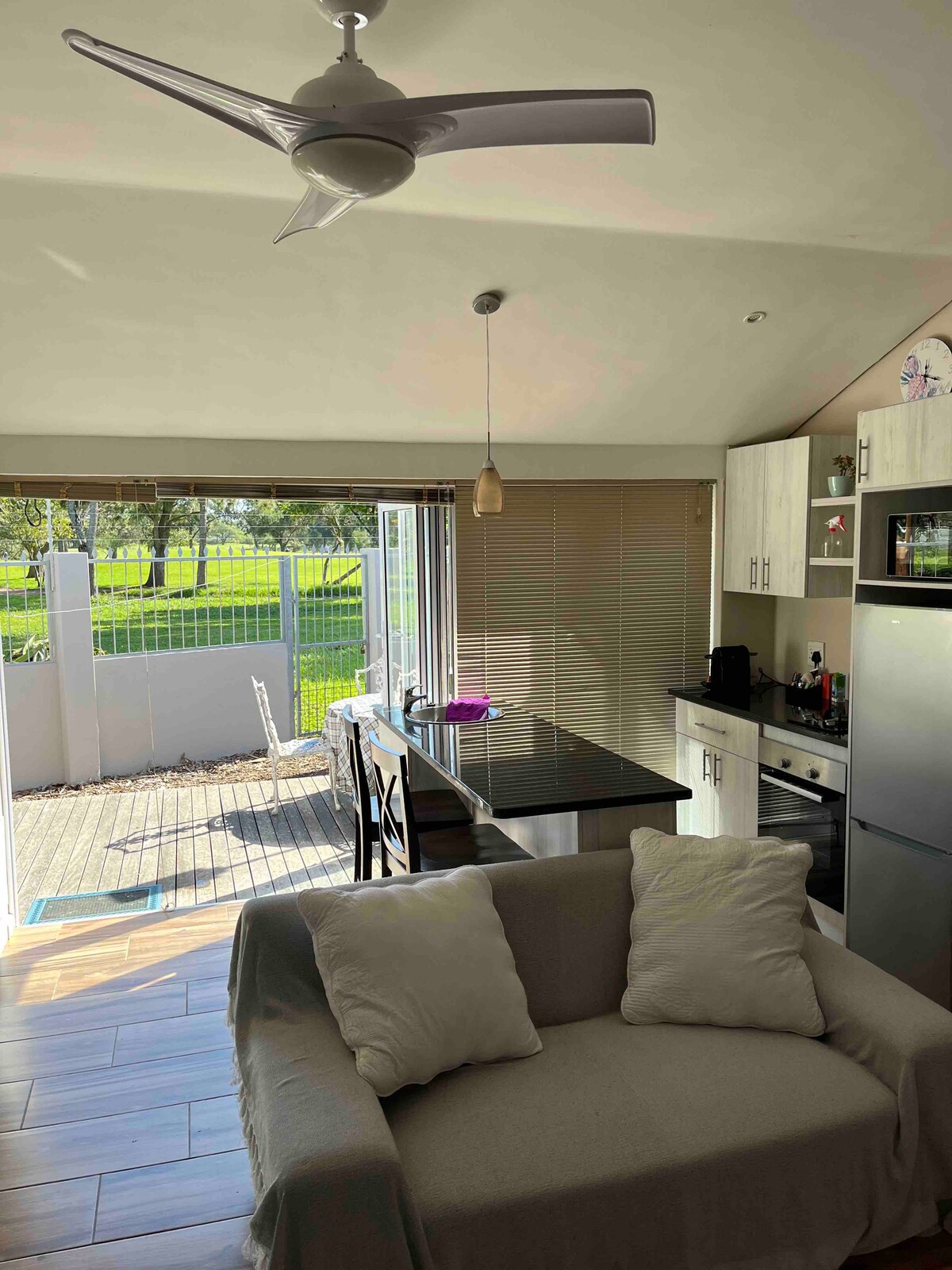 Prostrana baštenska kućica (61 kvadratnih metara) koja se nalazi u centru Port Elizabet u popularnom predgrađu Valmer Daunsa. Naša seoska kućica ima udoban salon sa DSTV satelitskom televizijom i dobro opremljenom kuhinjom otvorenog tipa. Naša spavaća soba sa bračnim krevetom i čistom belom posteljinom ima dovoljno ormarića i moderno kupatilo sa velikom tuš-kabinom. Najbolje destinacije za kupovinu, turiste i restorane udaljene su svega nekoliko minuta. Nadam se da ćemo se uskoro videti!