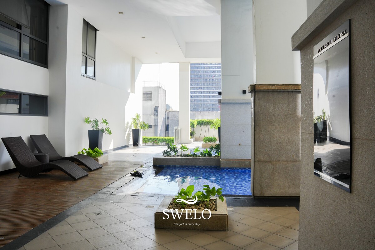 VELIČANSTVEN POGLED. LOKACIJA SUPERPRIME! U popularnom Makatijevom selu Salcedo nalazi se ovaj minimalistički studio na 33. spratu sa neograničenom upotrebom bazena na 35F. Budite na nekoliko koraka od visokih poslovnih zgrada (RCBC, PBCOM), restorana, kafića, vikend pijaca, parkova (Legazpi, Salcedo, Ajala trougao), bolnica (Makati Med), tržnih centara (Greenbelt+Glorietta). Samo 3 minute hoda od Ajala i Buendia avenije - ne možete biti centralniji od ovoga! Brza Wi-Fi mreža!