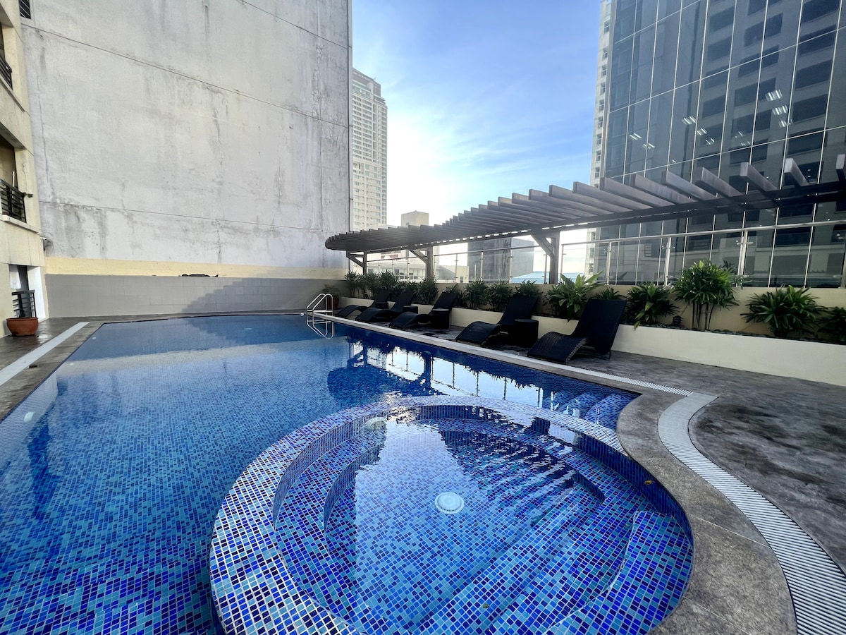 Start your day with a cup of coffee at the café downstairs, then take a leisurely stroll at Legazpi Active Park. Shop and dine at Greenbelt Mall and visit the Ayala Museum for a glimpse into the Philippines' rich history. Stay fit at the gym, then cool off with a dip in the pool. After a busy day, relish the view of Makati's cityscape from your balcony or from the comfort of your bed gazing out through the windows. When it’s time to depart, the airport is just around a 20 min. ride away.