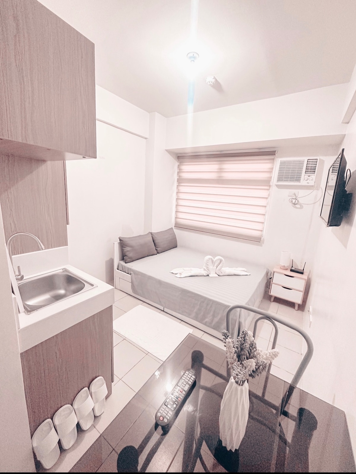 ——• Casa ni Yanyan - Fame Residences •—— 1BR jedinica | 24. sprat | Toranj 4 | Balkon sa Ortigasom/pogledom na izlazak sunca | Uključen parking ✨ Dobro došli u Casa ni Yanyan — jednostavnu, ali elegantnu jednosobnu jedinicu u objektu Fame Residences, Mandalujong. Uživajte u opuštajućem boravku sa prelijepim pogledom na izlazak sunca Ortigas sa balkona i besplatnim parkingom. Savršeno za kratak odmor, poslovna putovanja ili odmor — pristupačna udobnost u srcu grada!