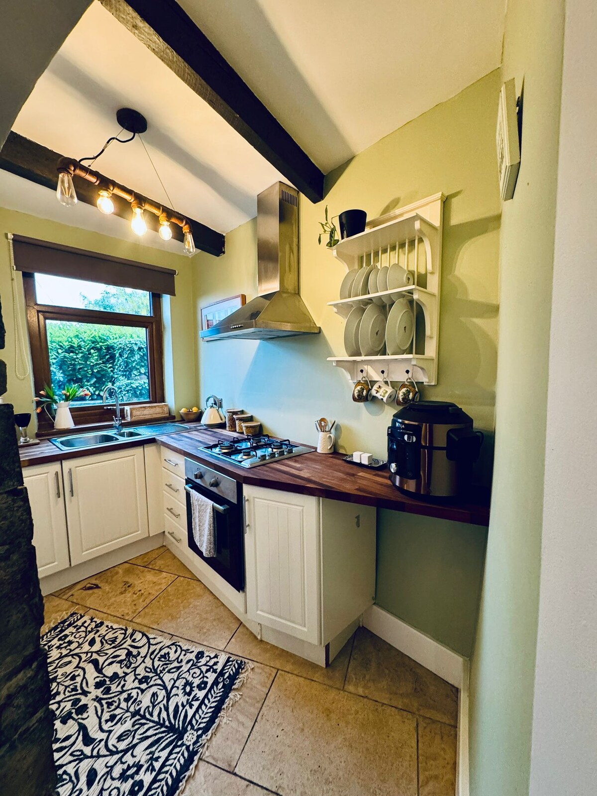 Opustite se sa stilom u ovoj prelijepoj seoskoj kući u Havortu. Šetnja od 2 minute vodi do kuće Brontea i poznate popločane glavne ulice. Prepun šarma i karaktera sa originalnim karakteristikama kao što su grede; kamini; sjedišta na prozorima i izloženi jorkširski kameni radovi. Uravnotežuje modernu praktičnost sa jedinstvenošću udobne seoske kuće. Uživajte u odmoru; kupatilo; bračni krevet (širine 180-179 cm); posteljina od 1000 TC; kožne garniture; barske stolice i sto; gorionik za drva; kvalitetna kuhinja; umivaonik u Belfastu. Renoviran s ljubavlju i pažnjom