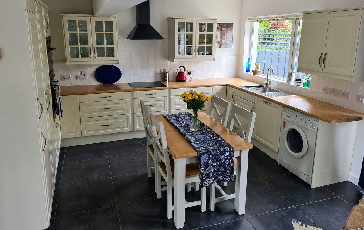 Bright modern I bed house with views over Belfast lough and Belfast City just 10 minutes away by car or 15 minutes by bus or Train . Portrush 1 sat automobilom ili vozom. Obalni put Antrim i dvorac Kerikfergus udaljeni su 15 minuta. Zoološki vrt u Belfastu i Cavehill udaljeni su 10 minuta. Trgovački centri Abbey Centre i Nortkot udaljeni su 10 minuta prodavnice, restorani i pabovi u blizini odlične baze za otkrivanje Severne Irske.