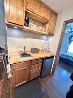 MINI PRIVATE OASIS. 6 MILES TO DOWNTOWN GREENVILLE! LAKEFRONT + PRIVATE DOCK NY Times #1 AMERICAN CITY! Experience modern luxury in your serene mini suite. Please note: the suite is located as an extension attached to a classical Scandinavian chalet. The suite is private. No shared spaces, shared soundproofed wall. 6mi downtown Greenville Amenities include: - Private entrance & patio - Private dock - 43” Roku TV - Charcoal grill, fire pit - Luxury toiletries - Blackout curtains