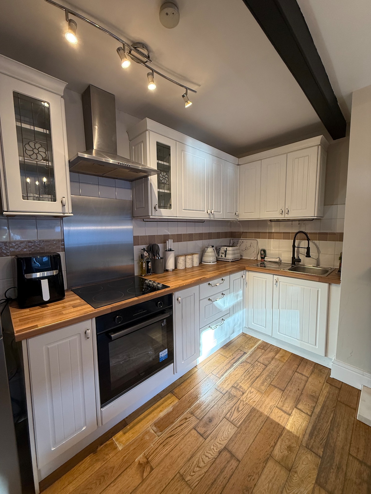 Prelepo preuređen prostor – idealan za opuštanje i povezivanje. Uživaćete u prostranom dnevnom boravku otvorenog tipa, udobnoj peći na drva i dve luksuzne spavaće sobe sa kupatilom. Savršeno za dva para ili porodicu – sa jednom spavaćom sobom koja nudi fleksibilan raspored kreveta. Pored igara na tabli, knjiga, igračaka i Netfliksa, tu je i igraonica sa stonim tenisom. Dobro opremljena kuhinja omogućava vam da zajedno provodite vreme tokom obroka. Viktorijanska štala smeštena je u mirnom seoskom području sa prelepim otvorenim pogledom.