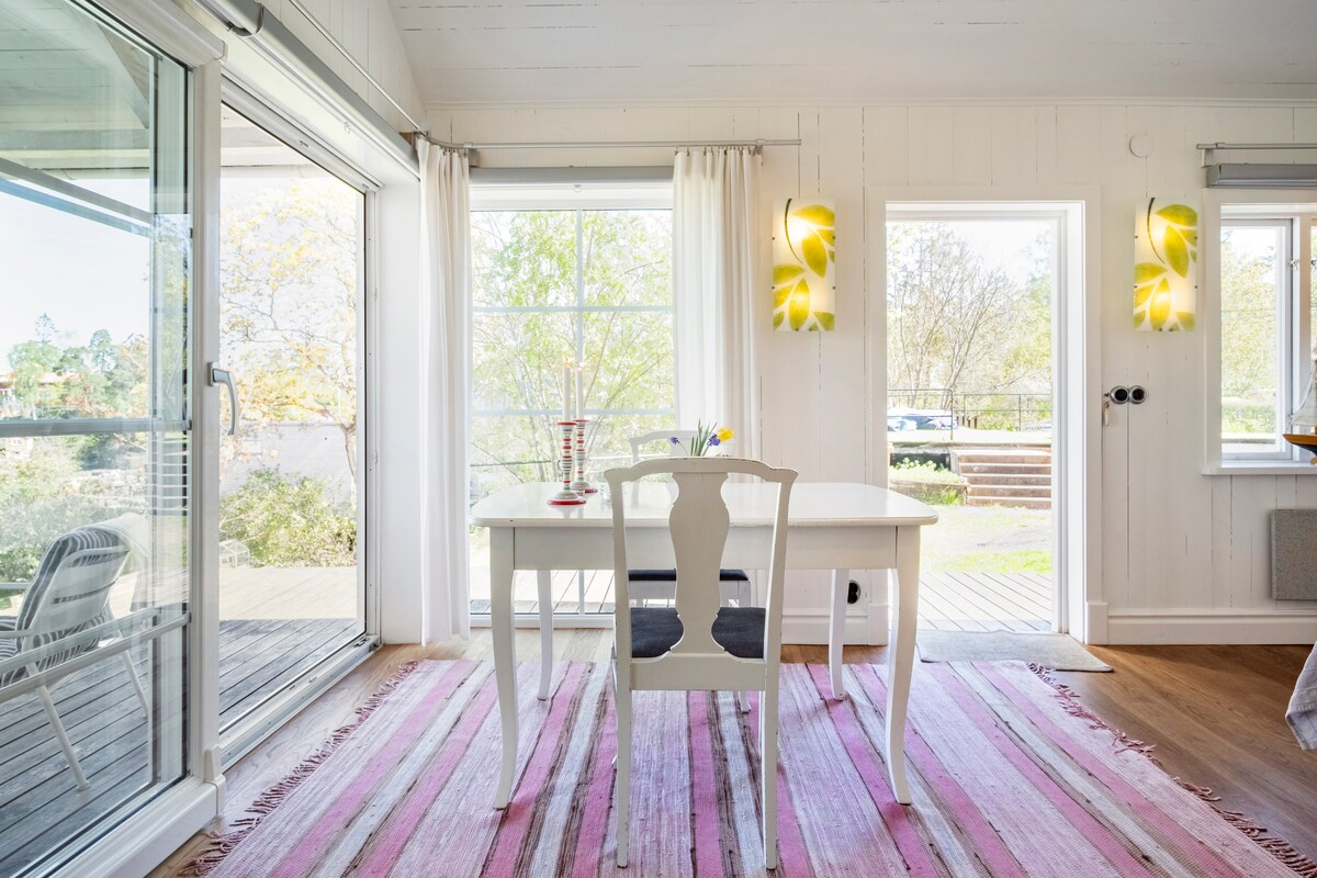 Only 30 minutes from Stockholm city center and 50 meter to the sea, this renovated bungalow on a small car free island is the perfect getaway in the archipelago. Take a dip sunny days or read in front of the fireplace on cloudy or snowy days!
