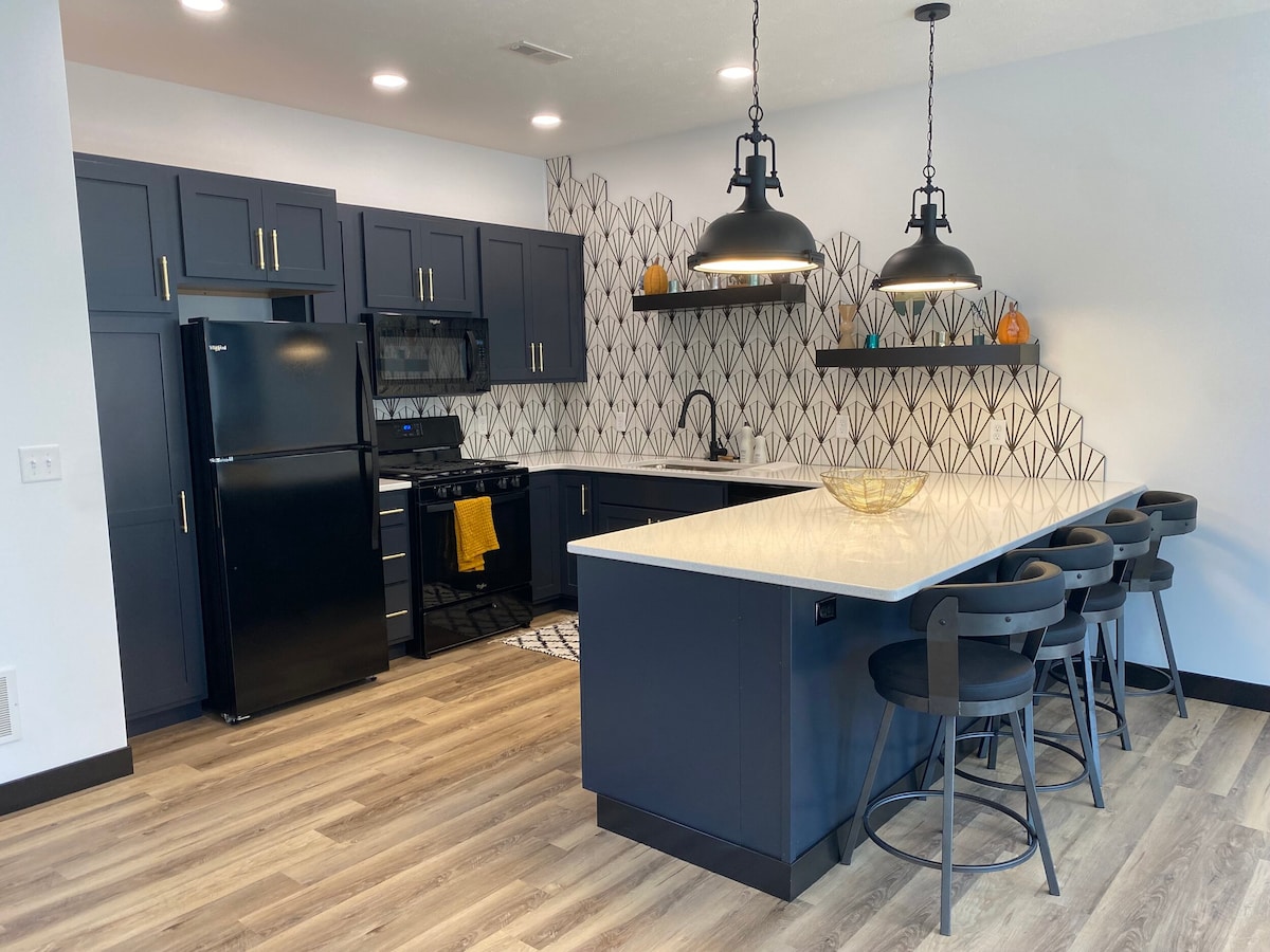 Uživajte u našem potpuno napunjenom domu za praznična okupljanja, rad na putu ili samo putovanje gradom. Uključuje potpuno opremljenu kuhinju, televizore sa strimovanjem i mašinu za pranje/sušenje veša. Ovo je smještaj sa četiri spavaće sobe. Tri sobe imaju bračni krevet, a četvrta soba ima dva odvojena kreveta. Svaka soba ima TV. Dnevni boravak ima kauč na razvlačenje za dodatne smještaje. Garantujemo da će jorgan i sve ostalo biti sveže kada stignete. Kupatila i kuhinja su takođe potpuno dezinfikovani. ❤️