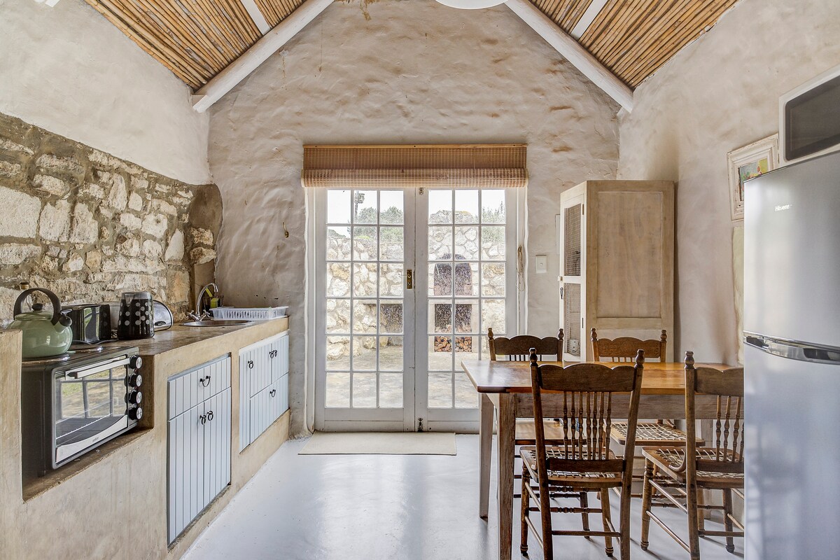 Pobjegnite u šarmantni dio istorije u našoj skoro 100-godišnjoj kamenoj seoskoj kući, smeštenoj u srcu naše farme Fynbos. Blagoslovljena očaravajućom ljepotom Fynbosa, utočišta za bogat život ptica. Doživite potpuni mir usred sezonskog cveća kao što su Protea, Pincushion, Blue Bells i Heath. Uživajte u slikovitim rutama na farmi, savršenim za staze. Možda ćete uočiti roaming Blue and Gold Wildebeest. Nalazi se na 18 km (9 km makadamskog puta) od slikovitog primorskog grada, Stilbaai.