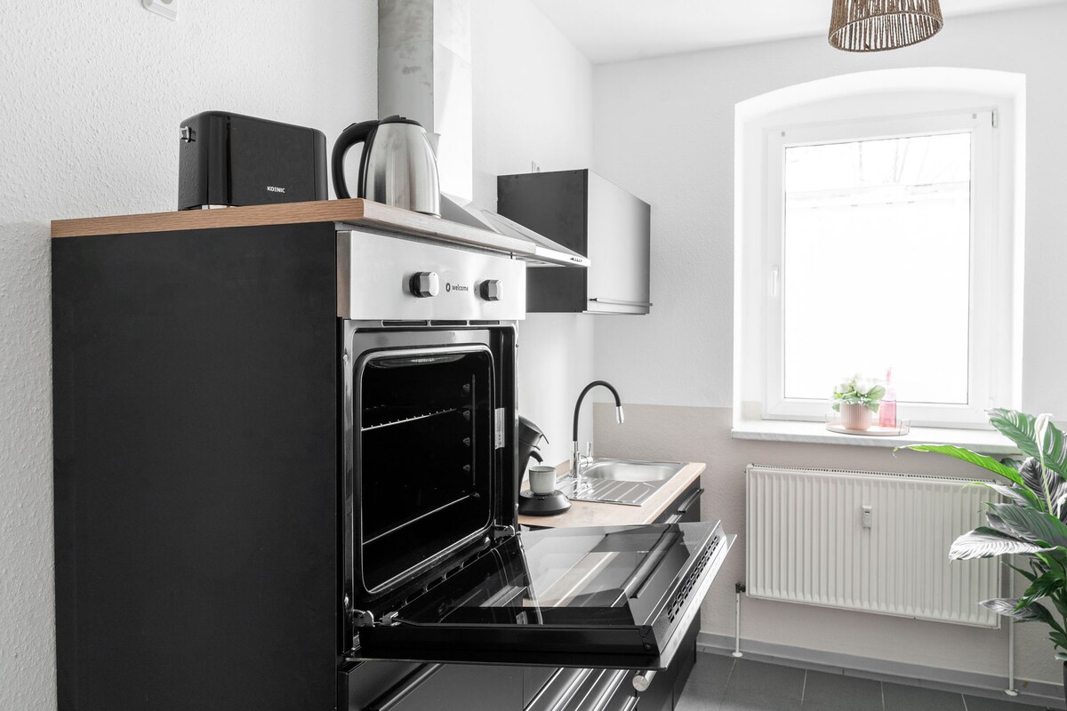 Super Moderne Unterkunft im Zeitlosen Stil. Sehr Zentral gelegen, Im Herzen von Cottbus. -Wlan,Tv -EinbauKüche -Wc -Dusche -Bett 180m -Schlafcouch 130m Checkin Über SchlüsselTresor. Öffentlicher Parkplatz direkt vor der Tür. Eine Neue Einbauküche mit modernen Geräten. Platz für 4 Personen, auch Schlafmöglickeiten für 4 Personen verfügbar. Babybett, und Stuhl kostenlos nutzbar. Den SchlüsselTresor Code erhalten sie 24 Stunden vor der buchung.Bettwäsche Handtücher werden gestellt.