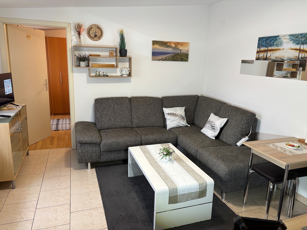 Dobro došli u naš novouređeni i stilski namješteni dvosobni stan u srcu starog grada Flershajma! Na 55 kvadratnih metara možete očekivati modernu udobnost u kombinaciji sa fantastičnim pogledom na rijeku Main. Stan je idealan za najviše 4 osobe i ima sve što vam je potrebno za opuštajući boravak. Više stanova je dostupno u istoj zgradi. Ako je potrebno, jednostavno pitajte.