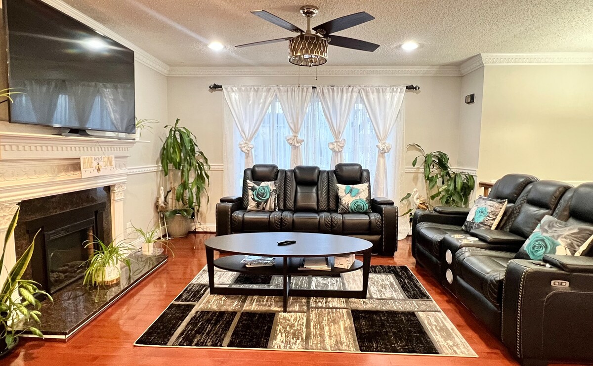 moderan čist, novoizgrađen prostor sa više od 2000 kvadratnih stopa prostora. Puna kuhinja sa uređajima od nerđajućeg čelika. Privatni ulaz i miran prostor. Veliki prozori koji unose mnogo prirodnog svjetla. Plafoni od 9inča, dizajnerske roletne, moderni podovi Dostupan je sistem za filtriranje meke vode Imam dve kamere sa prstenom izvan imanja, jednu iznad garaže i jednu iznad terase. Oni detektuju pokret i počinju da snimaju kada se detektuje pokret. Potpuno otkrivanje, ovo je zbog bezbednosti.