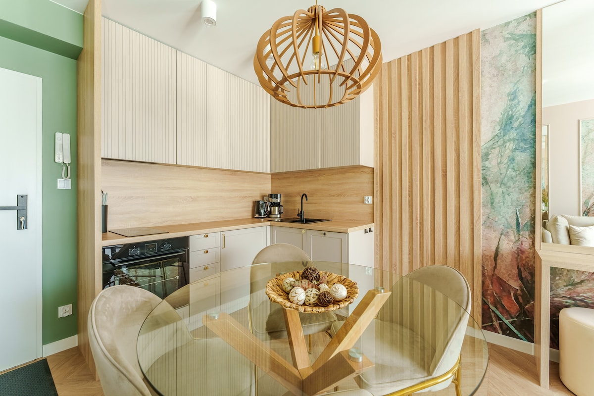 Moderan, elegantan stan sa čajnom kuhinjom, privatnom saunom, pristupom Netflix-u, PS4. Smješten samo 350 metara od mora, dizajniran za udobnost i opuštanje. Odlično za porodice, parove i poslovne putnike. Stan se nalazi u prizemlju moderne zgrade, u prostorijama odmarališta Sunset Resort u Grzybówu (balkon sa istoka). U blizini se nalaze brojni restorani i prodavnice (uglavnom otvoreni tokom ljetnje sezone), kao i stanica javnog prevoza.