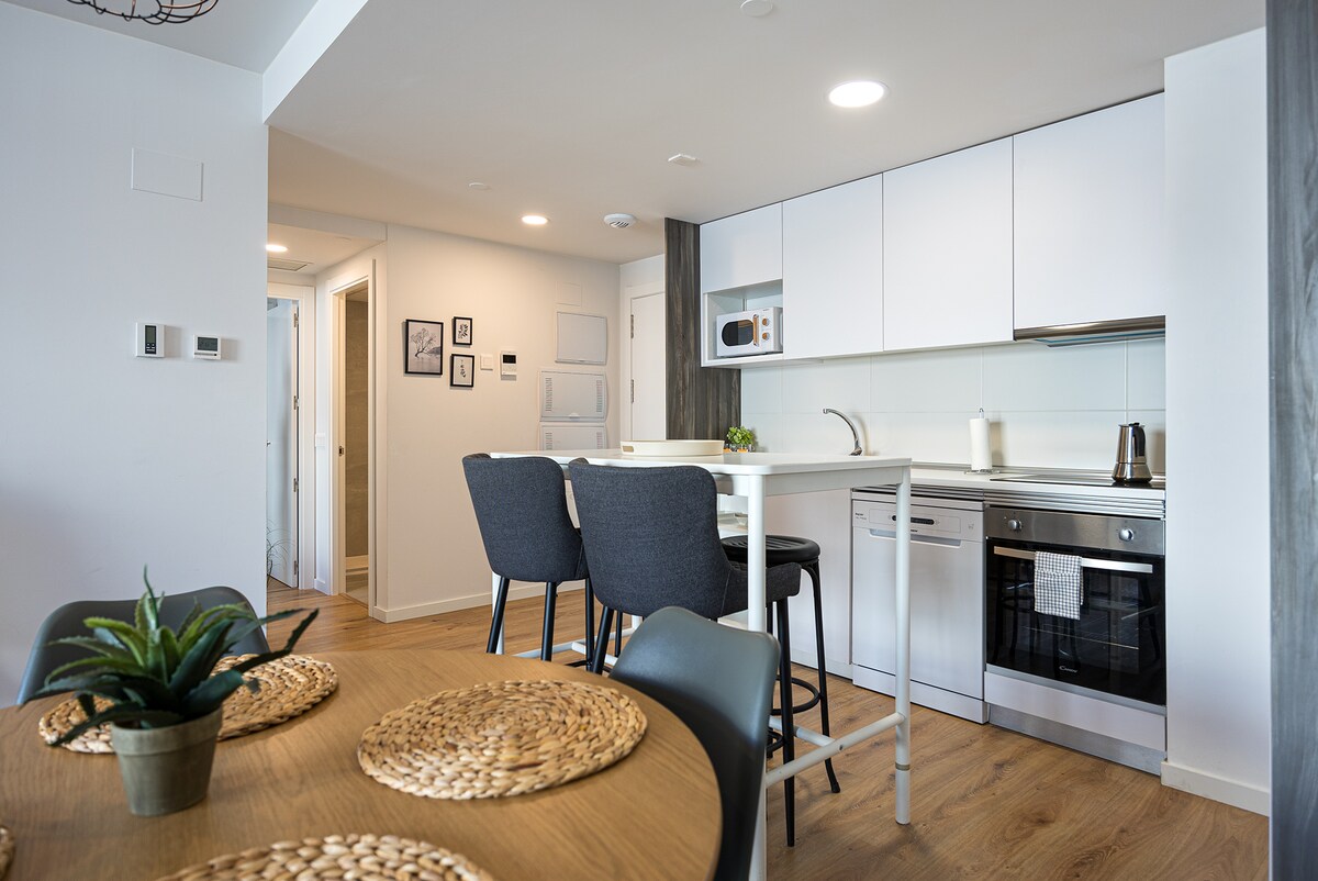 Luksuzni stan 15 minuta od aerodroma u Madridu i samo 100 metara od metroa. Direktna veza sa aerodroma za oko 40 minuta. Moderan dizajn sa privatnim podzemnim parkingom, brzom Wi-Fi mrežom i dodatnom posteljinom za duže boravke. Uživajte u pristupu spa centru, teretani i sezonskom bazenu koji je otvoren do 14. septembra. Jednostavne transportne veze do centra Madrida metroom ili autobusom. Savršeno za poslovne putnike, porodice ili goste koji traže udobnost, stil i nezaboravan boravak. Jedva čekamo da vas ugostimo.