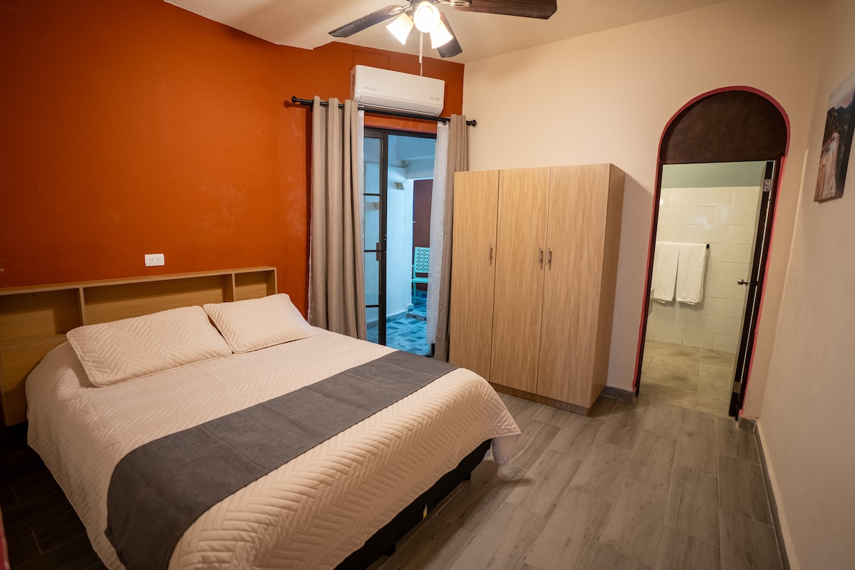 Dobro došli u svoj novi privremeni dom, sa najboljom lokacijom u Montereju! Nalazimo se tačno ispred Arene Monterrey i čuvenog Parque Fundidora. Prijava u 15:00 Odjava u 11:00 Odjeljenje ima dvije spavaće sobe: • Spavaća soba 1: bračni krevet (širok 150-179 cm) i privatno kupatilo unutar sobe • Spavaća soba 2: dva odvojena kreveta, sa kupatilom izvan spavaće sobe. Pored toga, stan uključuje dnevnu sobu, trpezariju, kuhinju i centar za pranje veša.