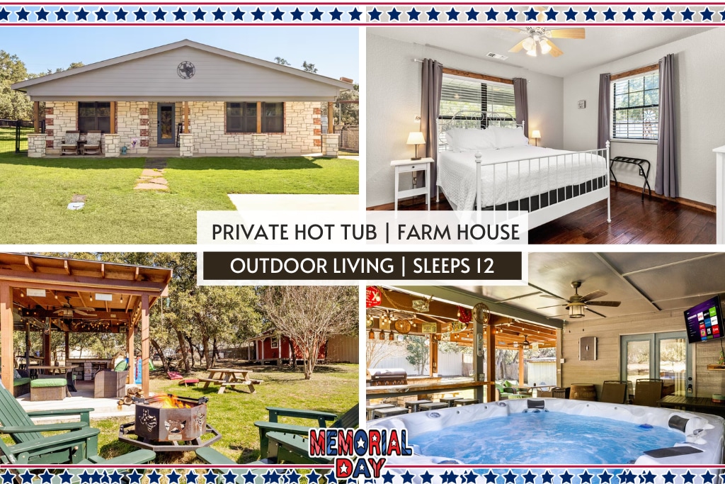 Pobjegnite u raj na brdu dizajniran za dvoje. Uživajte pod zvijezdama u svojoj privatnoj hidromasažnoj kadi, pijuckajte kafu na stolicama za ljuljanje na prednjem trijemu ili provedite dan izležavajući se pored pjenušavog bazena sa umirujućim vodopadom i sjajnom ognjištem. Cabana pored bazena djeluje kao vaše privatno odmaralište, sa kuhinjom na otvorenom, kaminom, TV-om, pa čak i saunom od eukaliptusa. Samo kratka vožnja od atrakcija u San Antoniju - ali daleko od svjetova u mirnom seoskom šarmu.