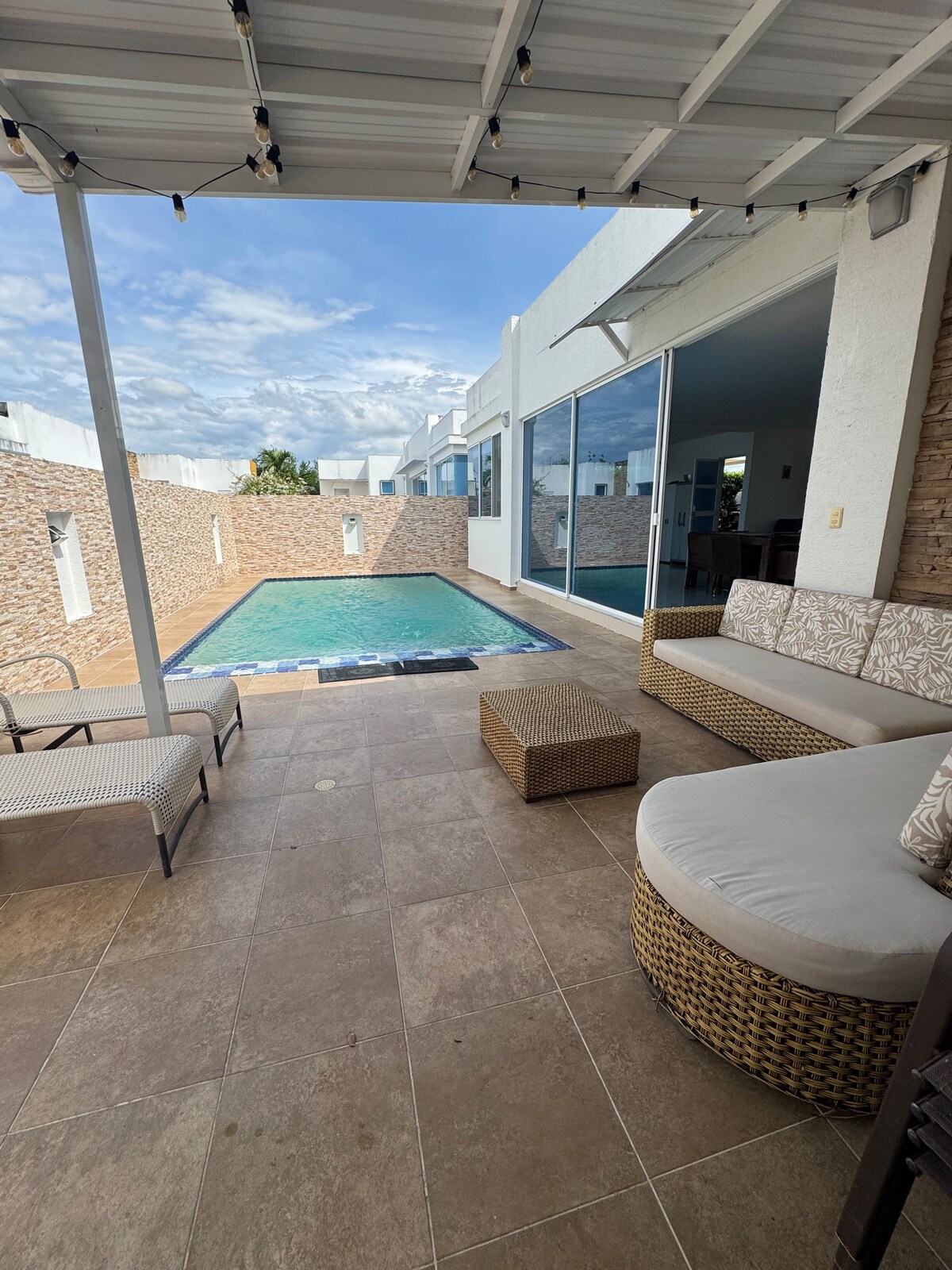 Relax and enjoy unforgettable moments with your family or friends in this place that offers comfort, privacy, and tranquility. With all the amenities inside: Spacious and comfortable rooms with air conditioning Swimming pool with outdoor furniture Ping pong table Internet TV Fully equipped kitchen Covered communal parking if required Spacious and comfortable living and dining areas Plus beautiful spaces in the condominium We look forward to seeing you 🍀✨☀️