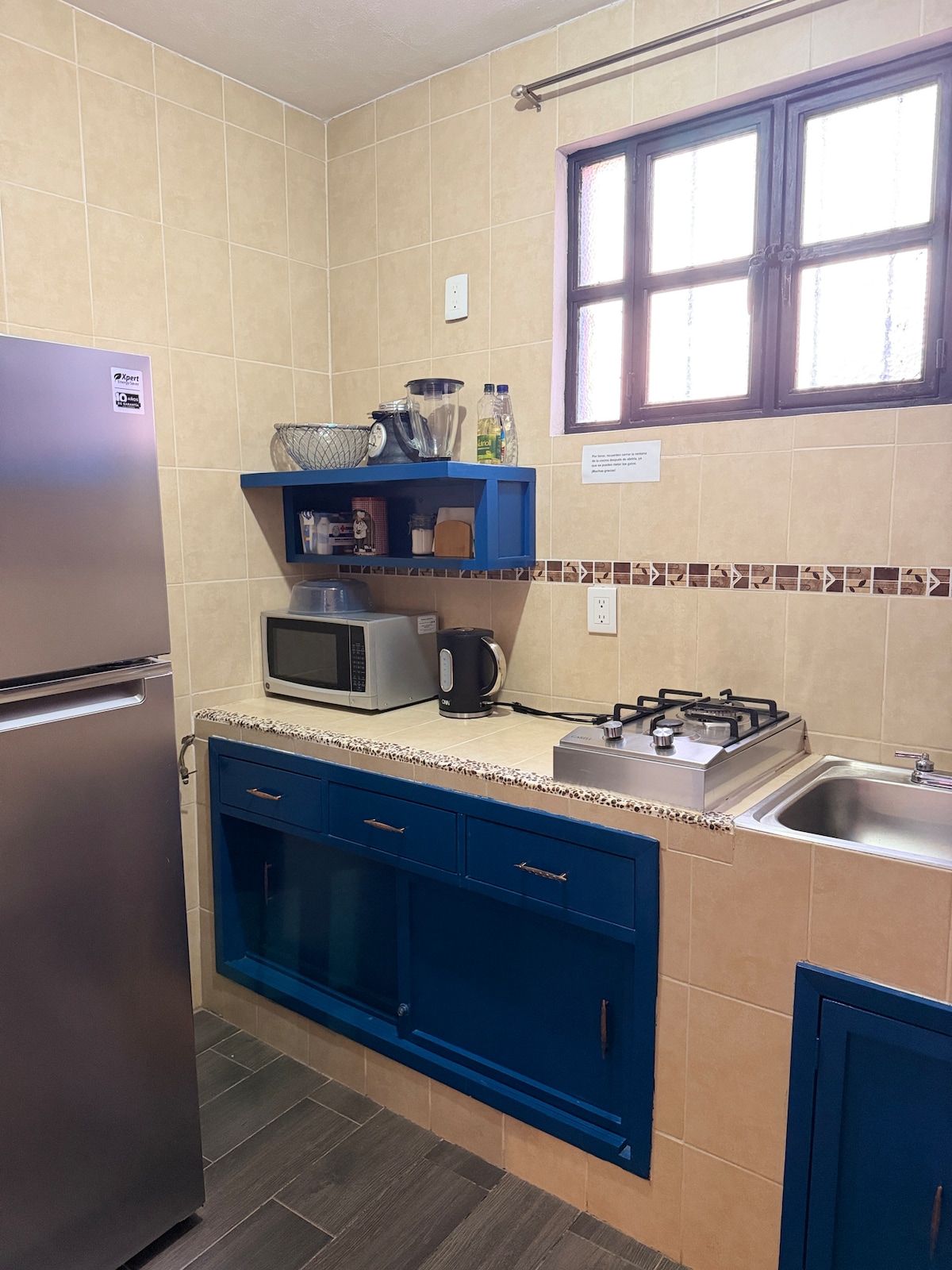 La habitación ofrece un espacio acogedor, bien iluminado y funcional con techo de bóveda catalana que ofrecen un estilo único. Las áreas comunes permiten una convivencia agradable y respetuosa entre huéspedes, manteniendo un ambiente tranquilo y hogareño La casa cuenta con cinco habitaciones privadas con baño propio, disponible para renta individual, lo que la hace perfecta para viajeros solos, estudiantes, parejas o personas que buscan una estancia cómoda y accesible.