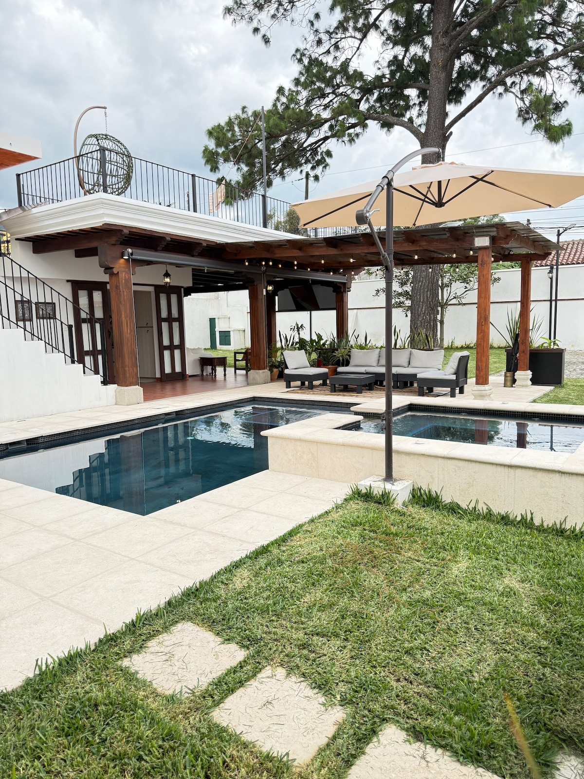 Doživite srce Antigve u udobnosti iz ovog luksuznog doma sa 6,5 spavaćih soba sa prelijepim baštama, velikim terasama sa pogledom na vulkan, privatnom kućom, saunom na drva, rernom za picu i bazenom! Vaša grupa će imati dovoljno prostora da se opusti i uživa u ovom prostranom objektu koji se nalazi u centru Antigve. Samo 3,5 bloka od Central parka, bićete na pješačkoj udaljenosti od većine svega što Antigva ima da ponudi. Dnevna usluga sobarice i parking za 2-3 automobila su uključeni.