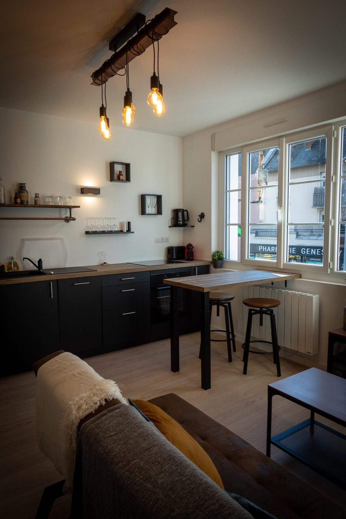 In the city center, but sheltered from noise pollution, this charming apartment combines cachet and modernity. Free parking in all the surrounding streets, paid parking (€ 1 for the 7pm to 7am time slot) a few meters away, tram stop 3 min walk. You will find: entrance leading to a huge double bedroom with office area, attic converted into a children's bedroom, bathroom with bathtub, living room with sleeping area, large dining kitchen with cathedral ceiling.