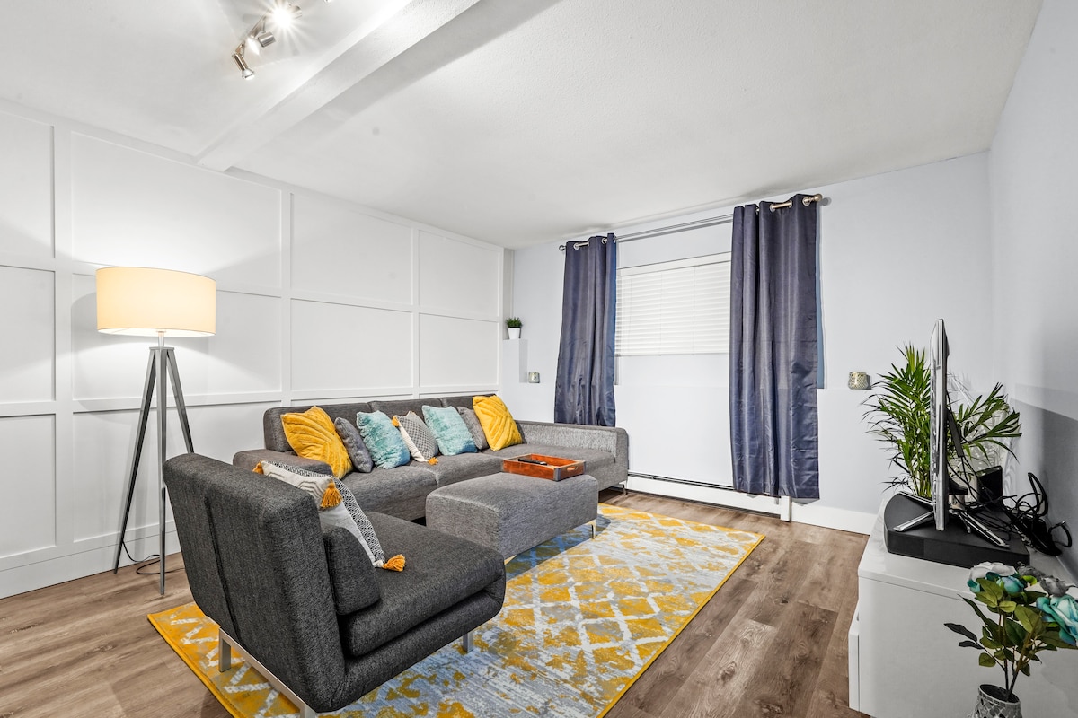 Nedavno renovirana 600 kvadratnih stopa svijetle udobne udobnosti. Dekor u stilu plaže koji će vam pomoći da se osjećate kao kod kuće. Savršeno za posao ili zadovoljstvo. Uključen je 5G WiFi. Telus Cable, Netflix, Prime, Disney i Apple TV su uključeni. Potpuno opremljena privatna kuhinja sa mašinom za sudove. 1 spavaća soba sa bračnim krevetom i luksuznim vrhunskim potpuno novim dušekom + novim kaučem na razvlačenje u dnevnoj sobi. U apartmanu je uključena mašina za pranje veša sa deterdžentima. Dobro osvetljeni parking na ulici, stepenice do ulaza.
