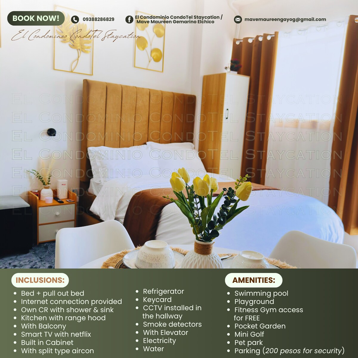 Centralno smješten novoizgrađeni studio od 24 m2 sa kondominijumom na balkonu sa pogledom na bazen koji se nalazi na 3. spratu ZGRADE Style Residences / SMDC condominium bldg, 3 do 5 minuta hoda do GRADSKOG TRŽNOG CENTRA SM, oko 5 do 10 minuta vožnje do Megaworld Blvd i ICC, sa BRZIM INTERNETOM (300 mbps)