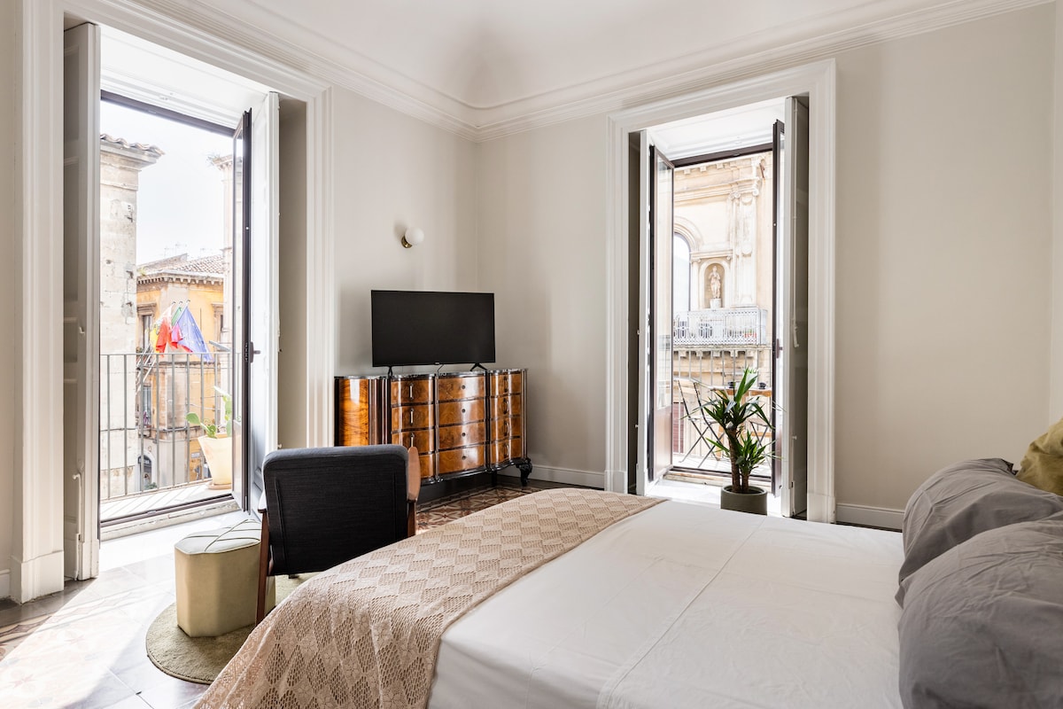 Istorijska kuća s kraja 19. vijeka, sa originalnim cementom iz tog vremena, sa pogledom na grad i glavnu Via Garibaldi sa koje se možete diviti katedrali Sant 'Agata i istorijskoj Porta Garibaldi (Fortino). Uživajte u elegantnom odmoru u ovom prostoru u centru grada, s pogledom na Duomo i Giovanni Verga's Casa Museo, cijenićete lokaciju i blizinu fantastičnog antičkog pozorišta i dvorca Ursino, kao i sve atrakcije grada Katanije!